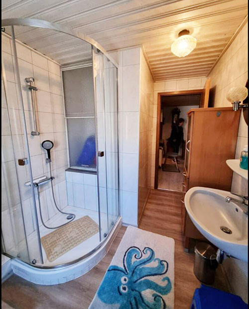 - Badezimmer mit Dusche und WC (Haarföhn vorhanden)